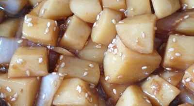 9. 통깨를 적당히 뿌려주면 감자조림 맛있게 만드는법 완성입니다.